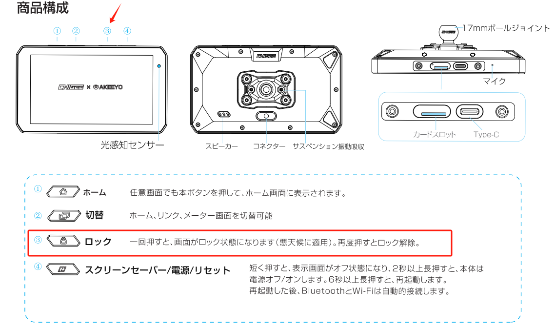ボタンを約2秒間長押しすると、画面がロックされます。
